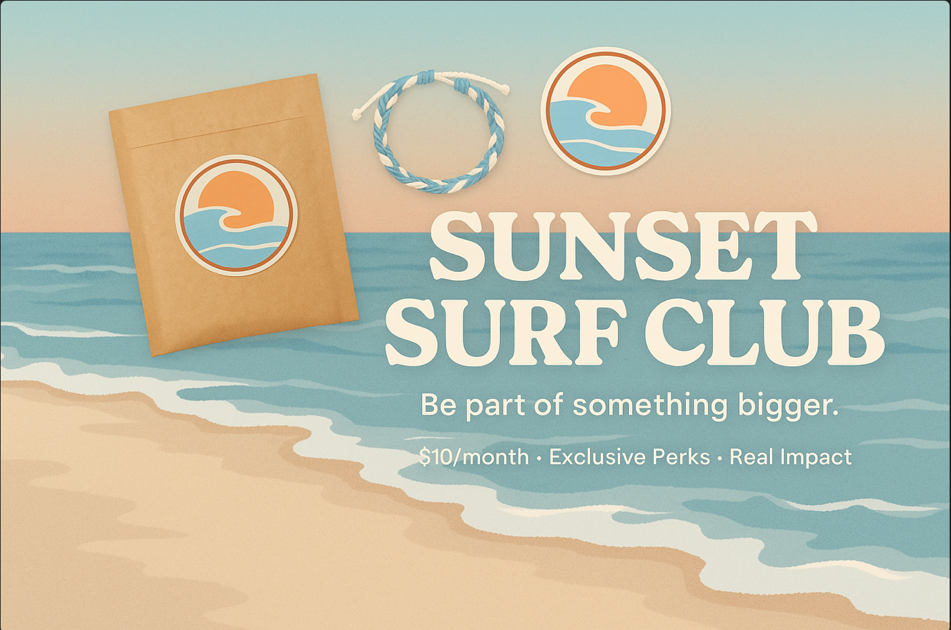 - 🌊 Exclusive Sunset Surf Club packaging (limited runs, just for members).